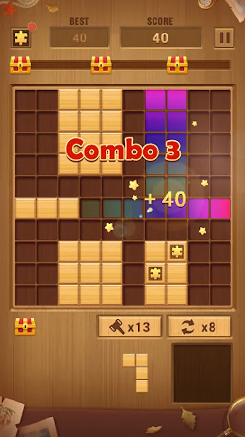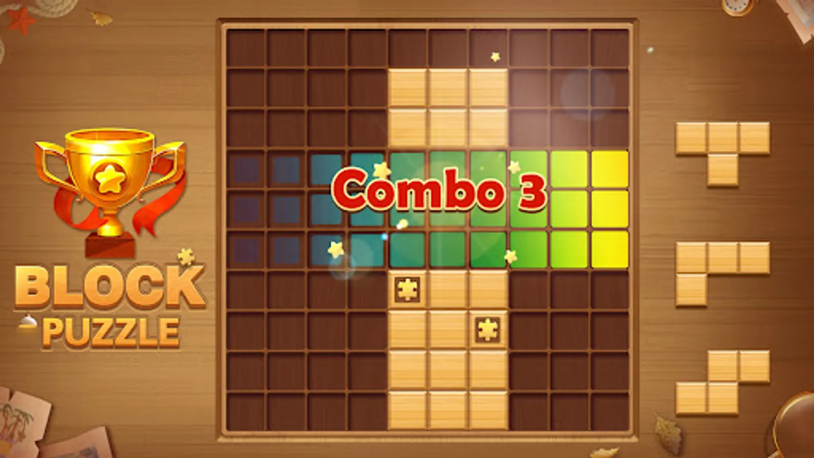 Block Puzzle - Wood Block Puzzle Game is a wooden jigsaw puzzle specially designed for you! The combination of log cubes and natural themes inspired by nature allows you to not only have fun in the game, but also to be closer to nature. It can relax your mind and at the same time make your brain to be fully trained!