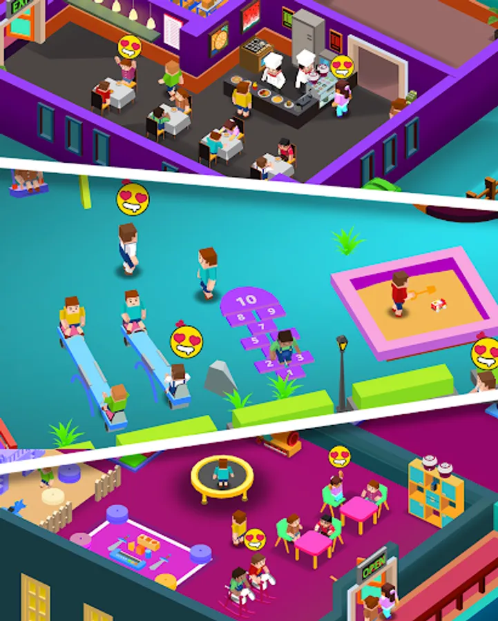 Start with your managerial skills and grow your idle empire in this hotel tycoon simulator with excellence. If you like management games then this idle daycare tycoon is surely for you where strategic decisions have to be taken to grow a hotel business with profitable results. Provide a perfect daycare center to your clients, take care of their kids by upgrading facilities, offering healthy and hygienic meals. Use your imaginations to create amazing business empire and build your idle daycare.