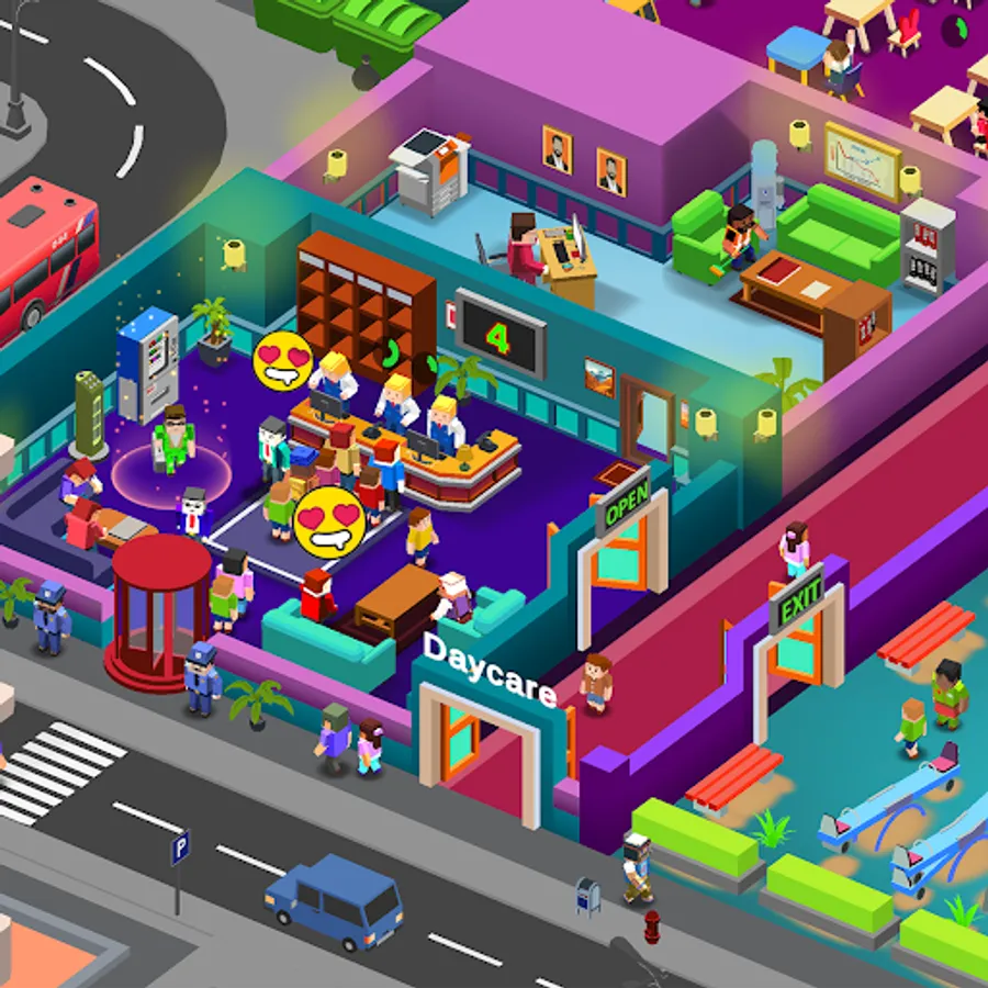Welcome to Idle Daycare Tycoon - one of the interesting idle tycoon games. In this idle simulator game, you start running a small baby care and working hard to manage, expand your business to chase big dream: building daycare empire!