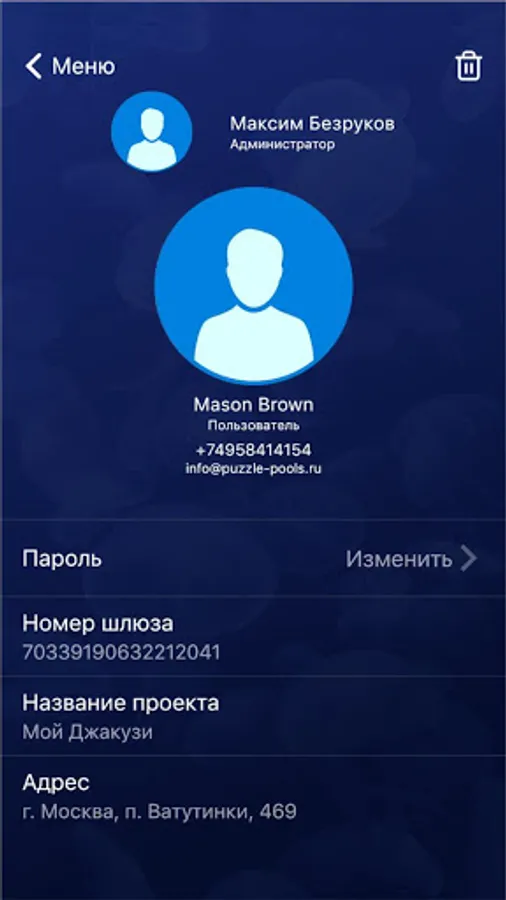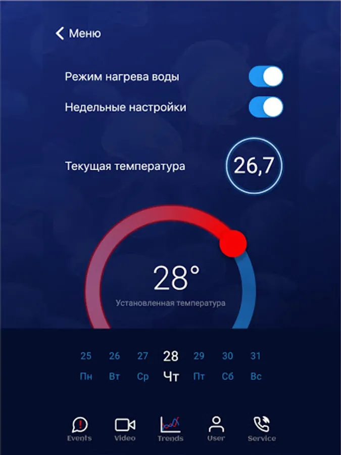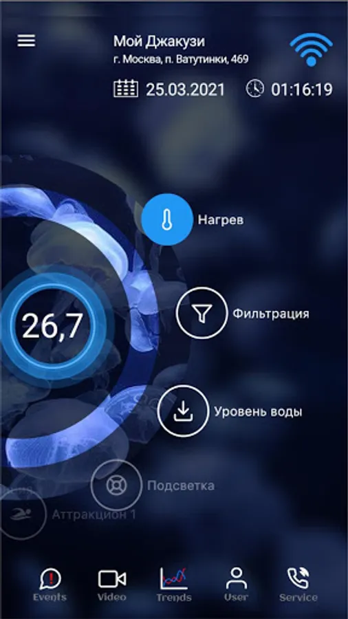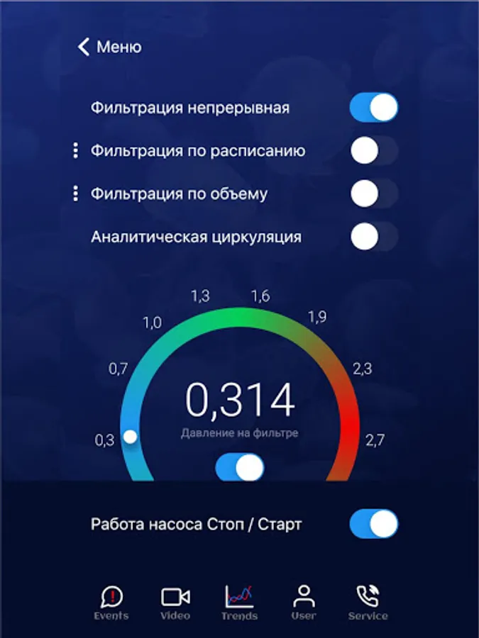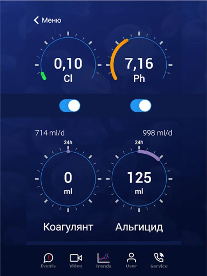 A mobile application that allows you, your family and the service organization to monitor the state of the pool, manage all technological processes of the water treatment system, as well as attractions and lighting.