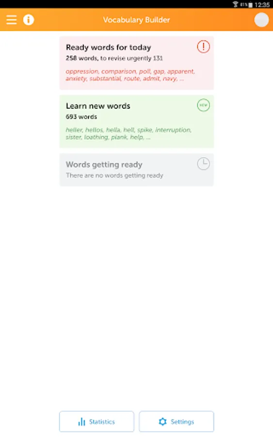 Vocabulary Builder — Revise words from your personal dictionary using the SuperMemo algorithm.