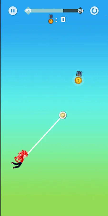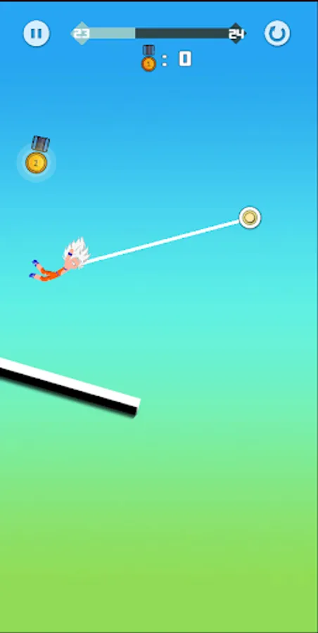 - Swing from hook to hook to pass all the levels and earn as many coins as you can