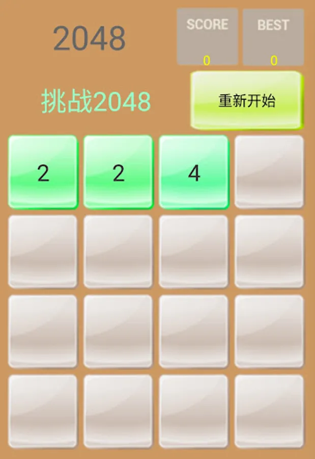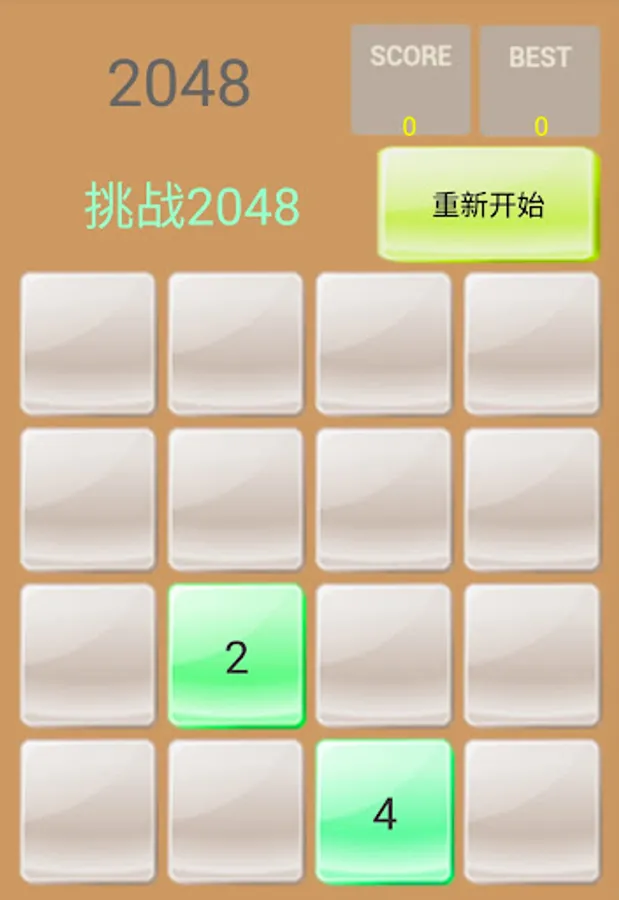 Swipe the screen to move the tiles left, right, up, and down. When two tiles of the same number touch, they merge into one! Every time you slide, a new tile will randomly appear in the blank space on the board