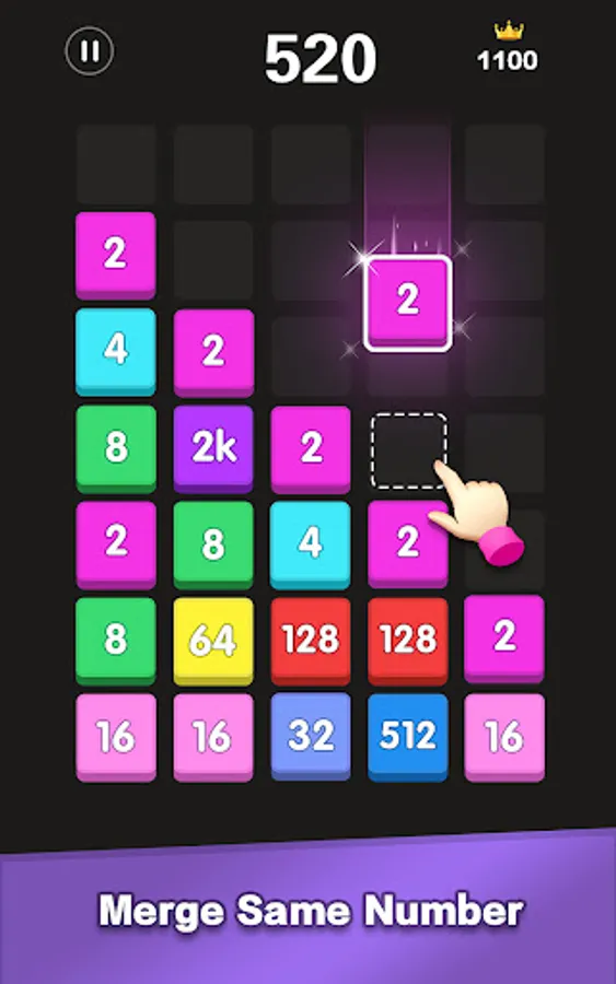 Tap the moving number blocks to merge and fight for bigger numbers!