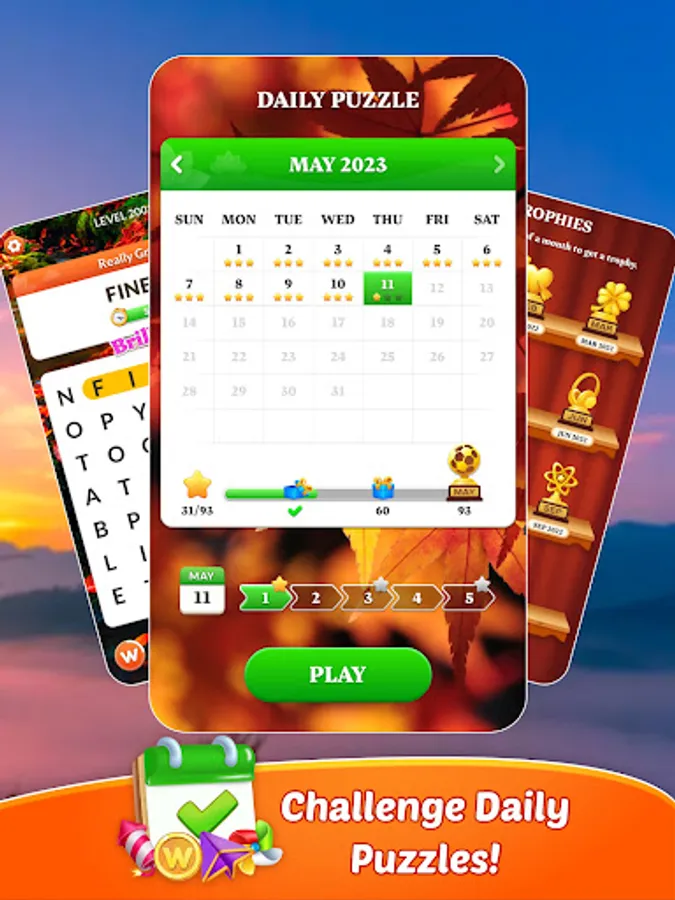 In Word Search Pop, you'll immerse yourself in the fun of finding hidden words while competing with your friends and players around the world. The stunning landscape backgrounds and pleasant music will create a relaxing experience for your eyes, ears, and mind!