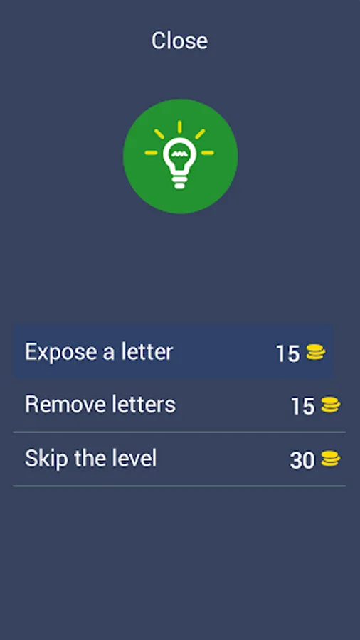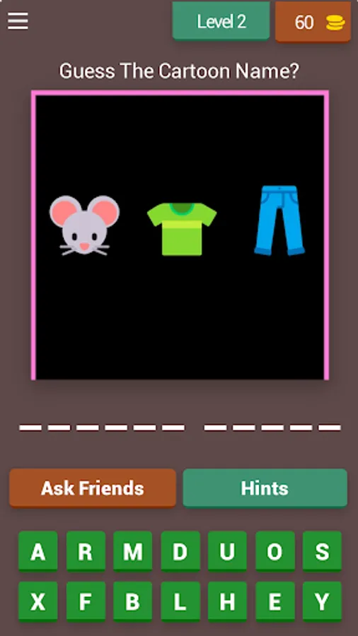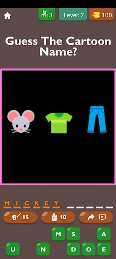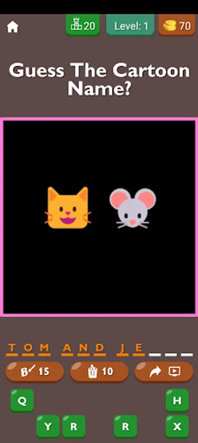 Stuck on a challenging level? No worries! Use helpful hints and power-ups to aid you in your quest to guess the characters. Remove incorrect letters, reveal letters in the answer, or skip the level entirely. With these useful tools, nothing can stand in your way!