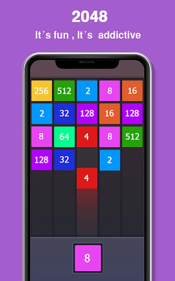 Shoot-drop the number to merge, get new higher number blocks. Merge the biggest numbers!