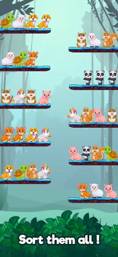 Are you ready for a thrilling and addictive puzzle game that will whisk you away into a world of adorable pets? Get ready for an exciting journey as you embark on a quest to organize a delightful menagerie of 12 charming and fluffy pets, including dogs, cats, rabbits, ponies, parrots, sheep, squirrels, turtles, ducks, pandas, little pigs, and hamsters. It's more than just a sorting game; it's a whimsical adventure that will test your skills and take you to new heights of pet-puzzling fun!