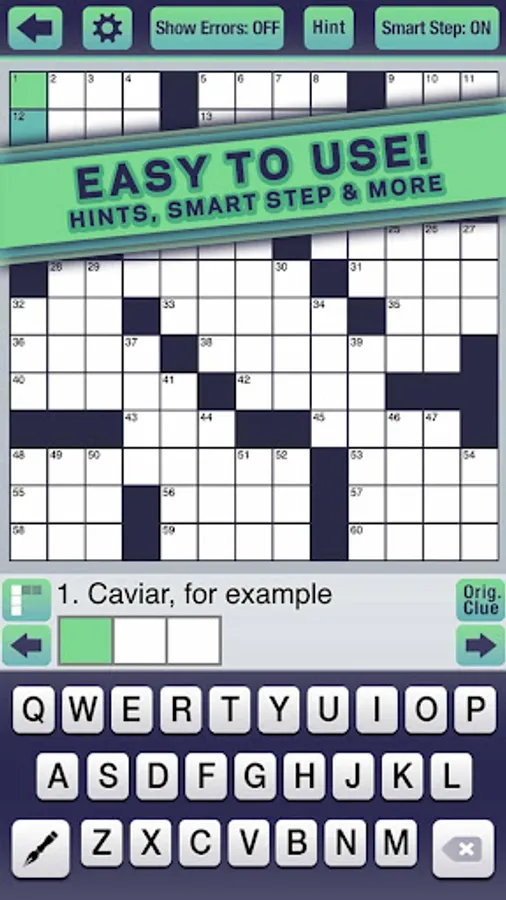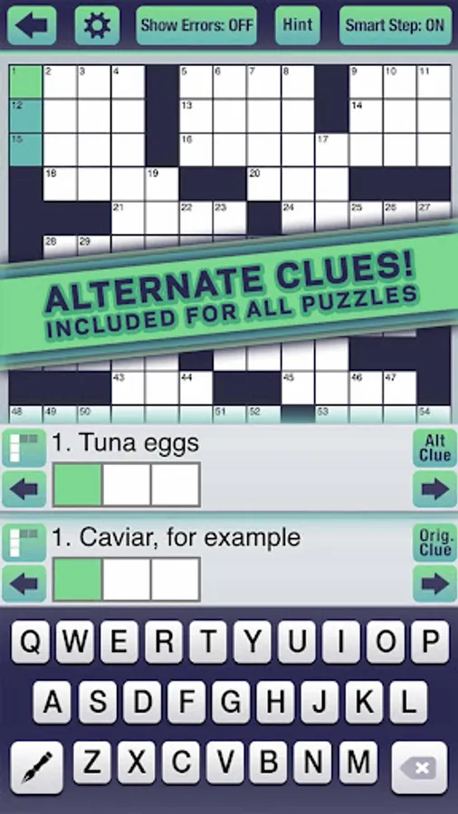 • Check for errors at the touch of a button using the Show Errors button in every crossword puzzle.