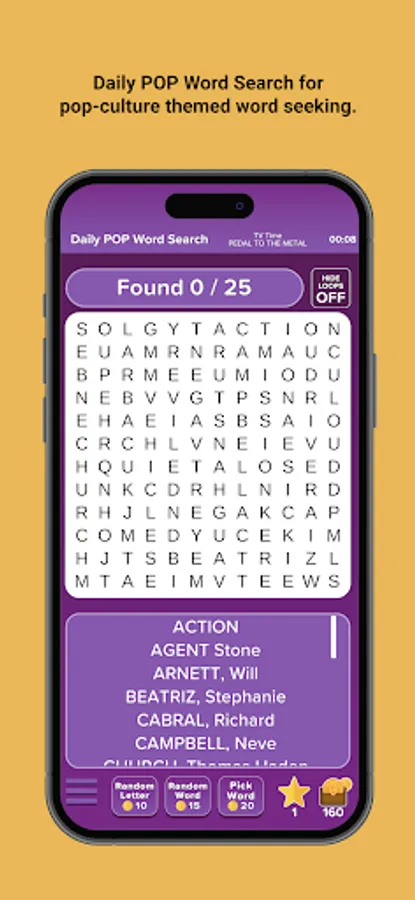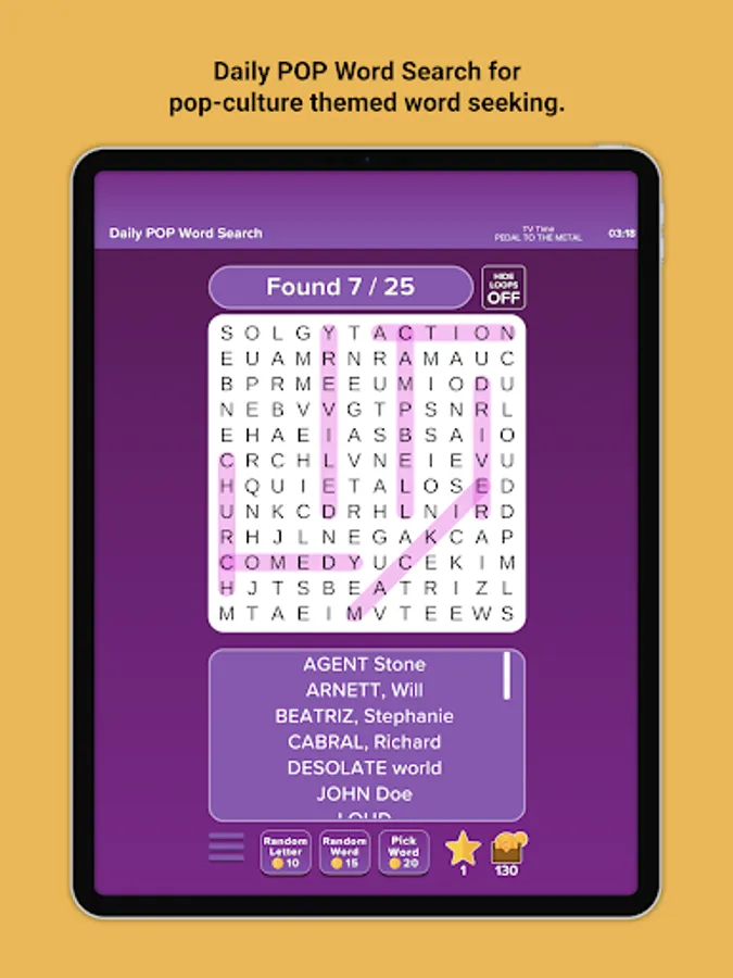 Daily POP Word Search presents pop-culture themed puzzles including music, books, movies, sports and other fun themes.