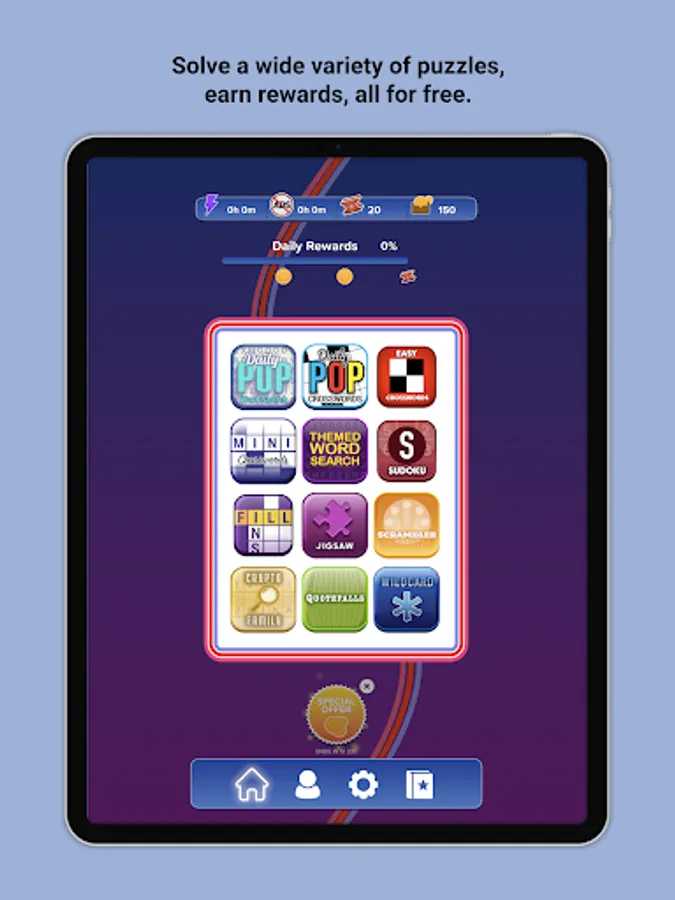 Daily POP Puzzles is the first PuzzleNation app to offer exciting in-app events where you reap the rewards! Conquer challenges, beat your best times, and unlock exclusive prizes. Rewards are varied and include coins, tickets, boosts and more. Enter an event today and solve puzzles to earn prizes!