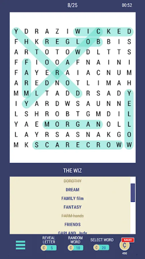 • Want a little more help? Hints are available to show letters and reveal words in each puzzle.
