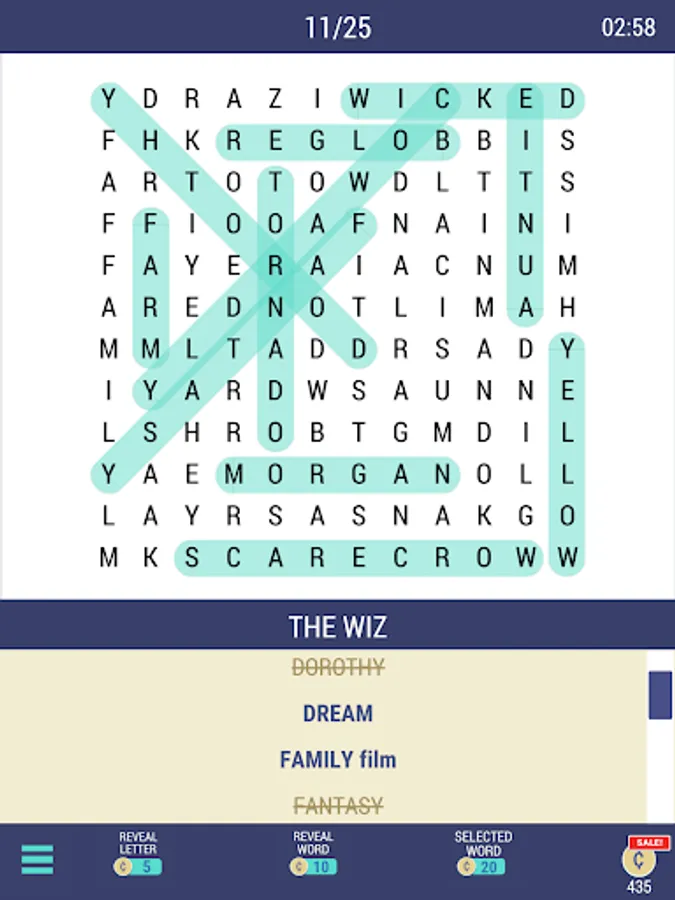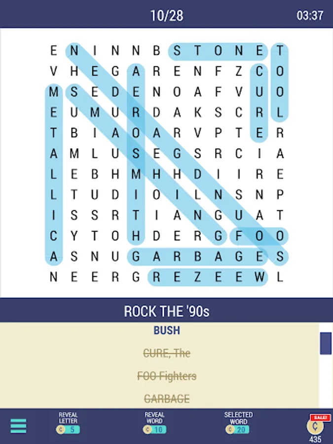 • All puzzles offer Hints and the option to Reveal Words, at any time.