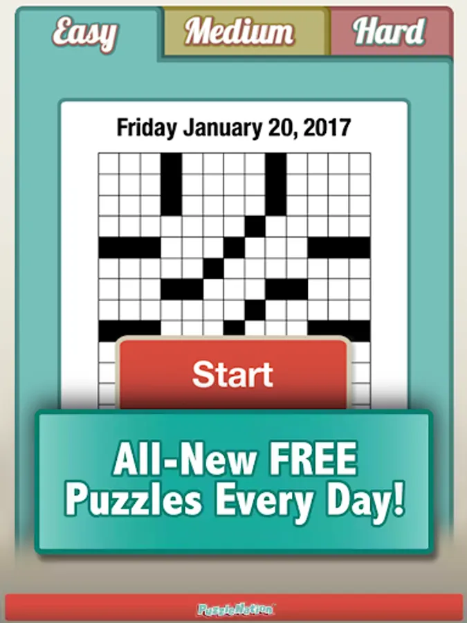 Free Daily Crossword Puzzles- Easy, Medium, and Hard- EVERY DAY! Also includes Free Sampler Collection containing twelve crossword puzzles to help get you started, plus thousands of all-new, ad-free Easy, Medium & Hard puzzle collections! Free to download, free to play!