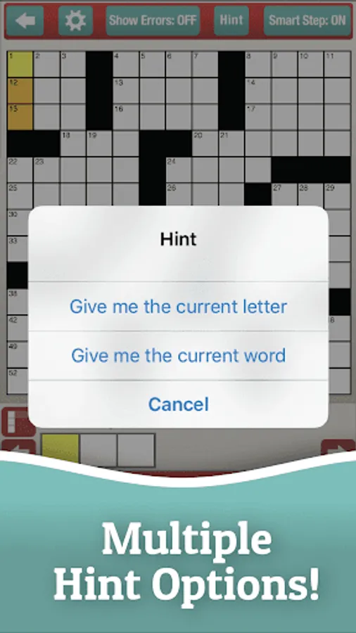 Want a little more help? Hints are available to show the current letter and the current word in each puzzle.