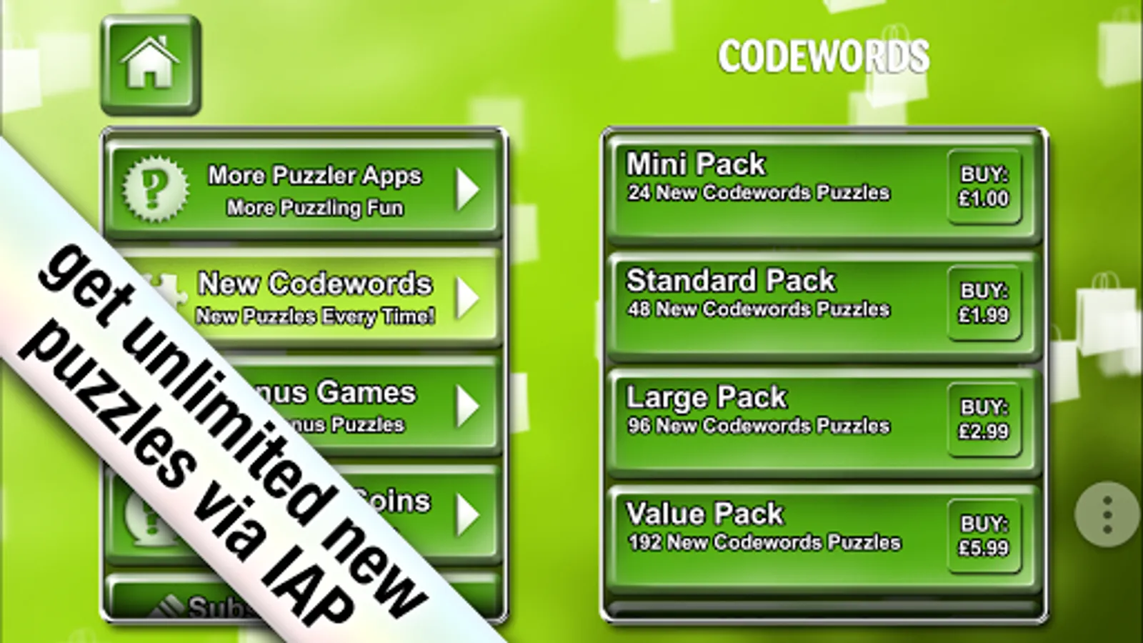 Once you have decoded the 12 free puzzles go on and decipher unlimited challenges with our great range of in-app packs.