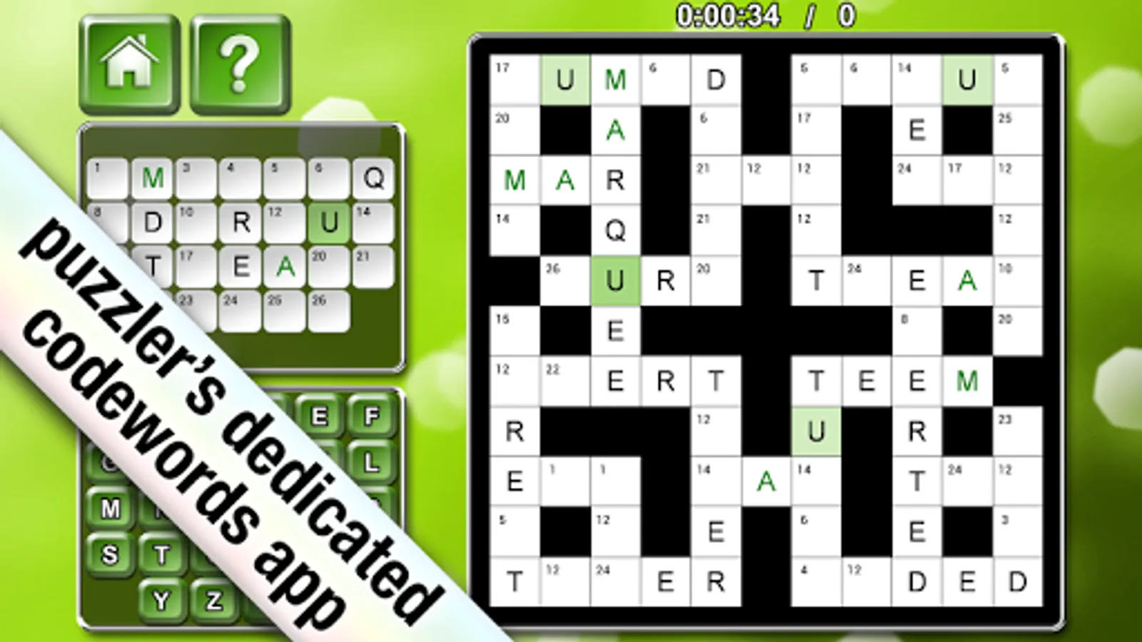 A codeword puzzle is like a crossword but with no clues! Each letter is assigned a number and the aim of the puzzle is to work out which letter is represented by which number! Some letters have been placed in the grid to get you started and there are a great range of hint options if you need a helping hand.
