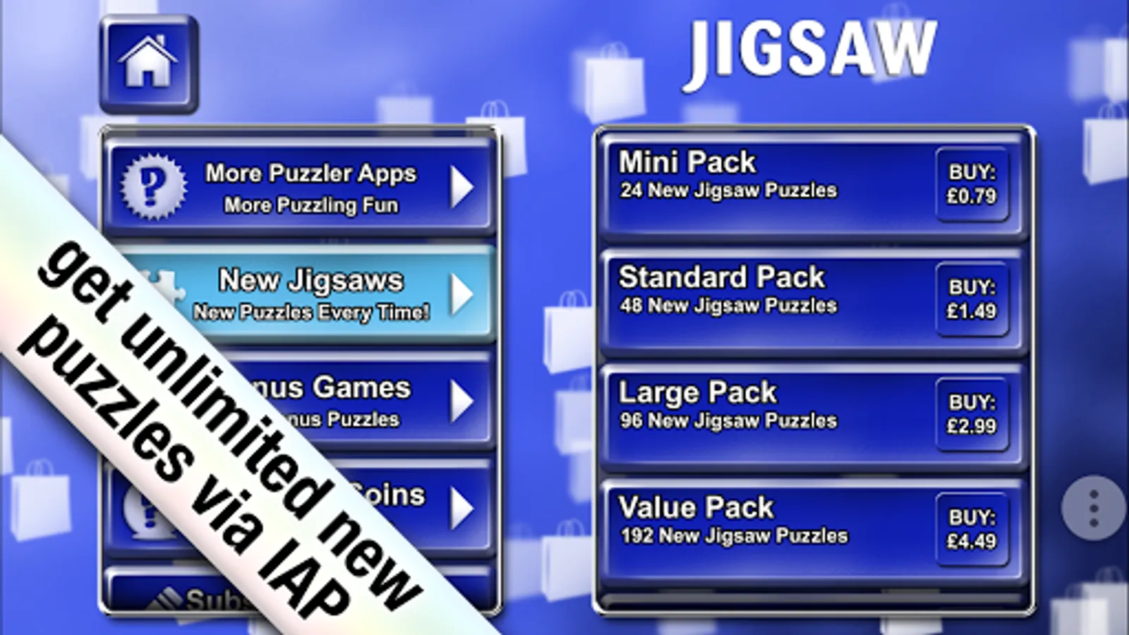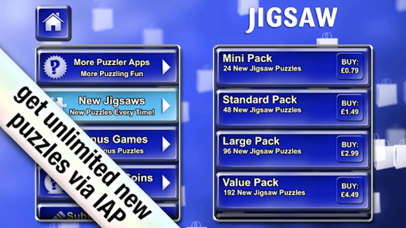 Enjoy 12 free puzzles then go on to play unlimited puzzles through a great variety of IAP options.