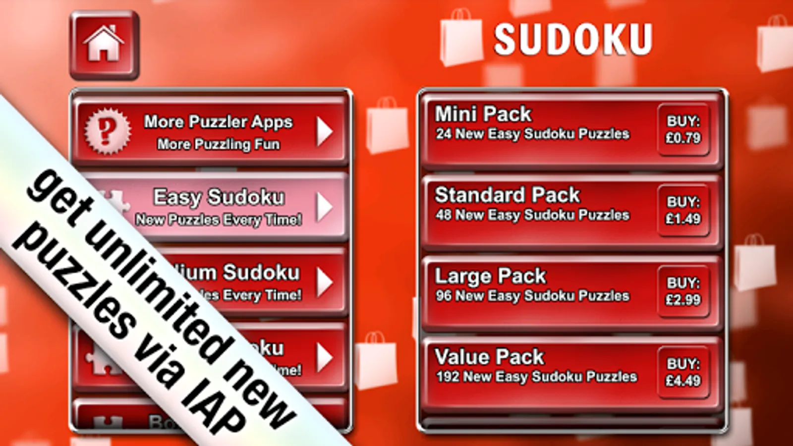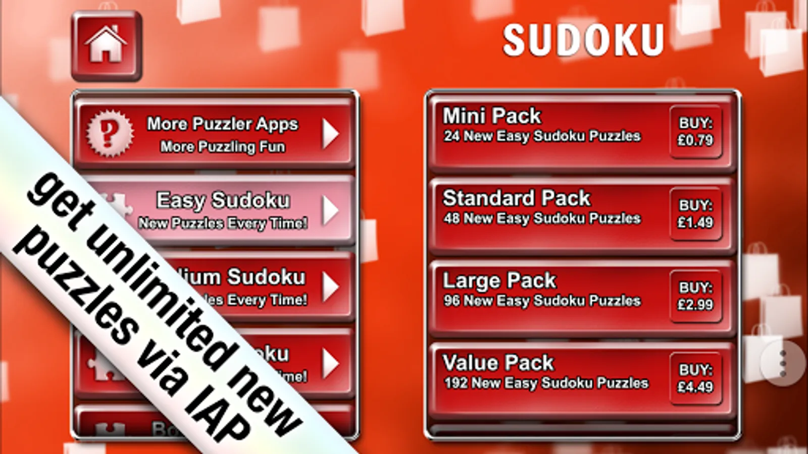 Go on to then enjoy unlimited puzzles through a great variety of IAP options with the choice of easy, medium or hard puzzles. This extremely well designed and crafted app makes these Sudoku puzzles extremely pleasurable to play & satisfying to solve.