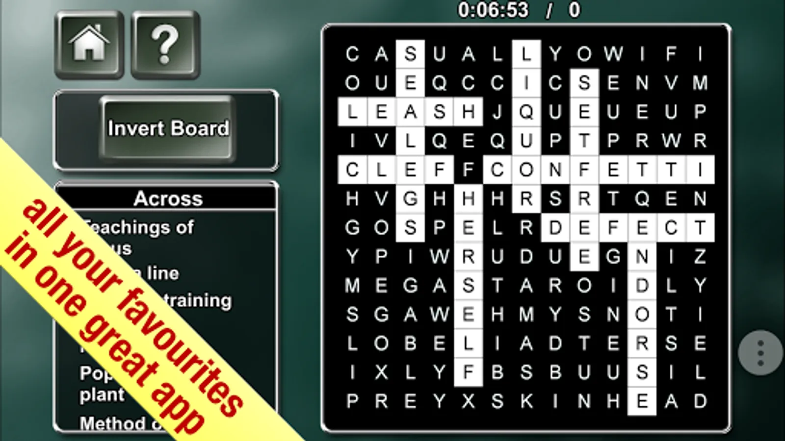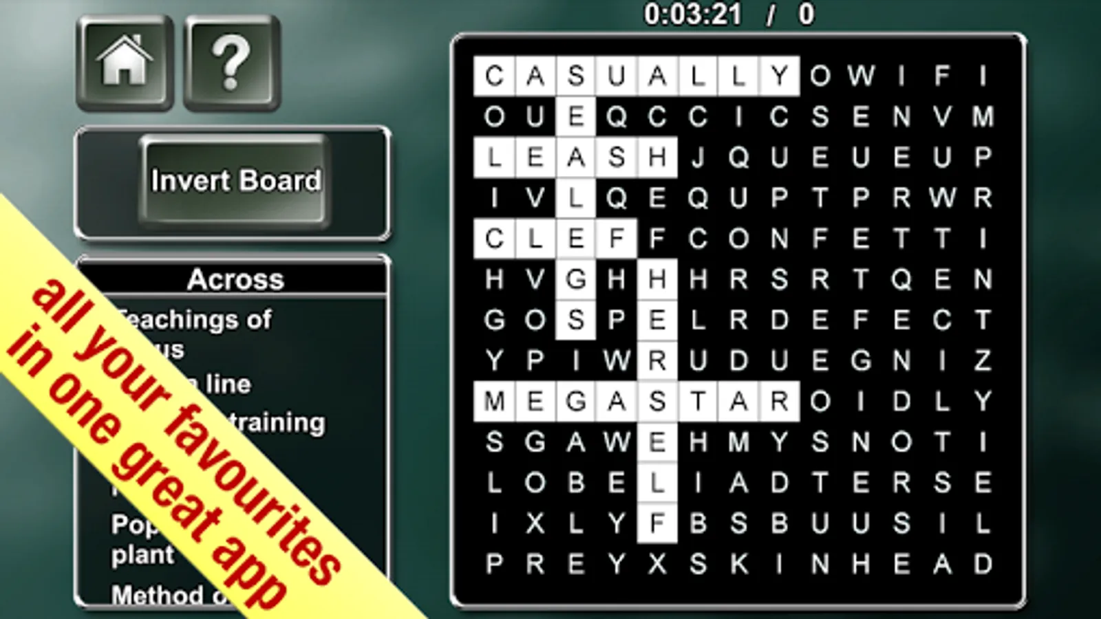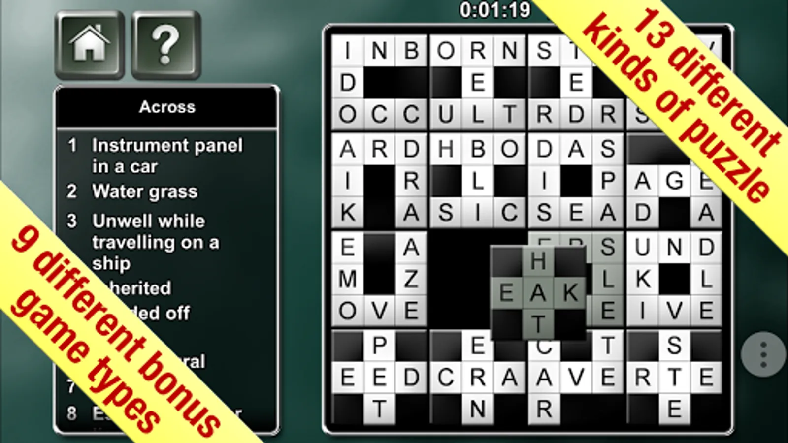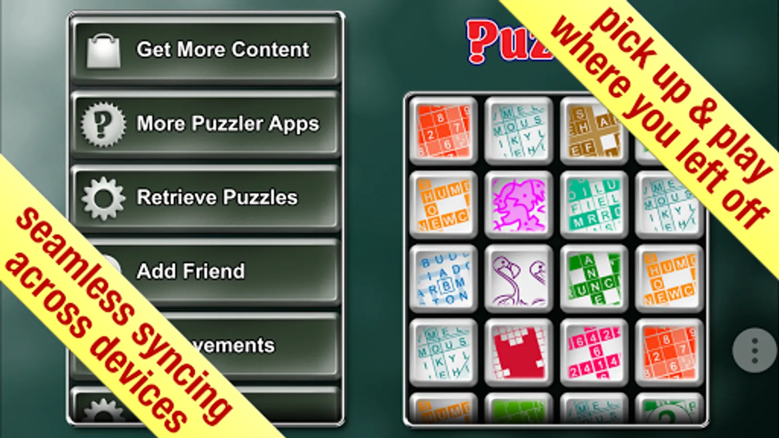 With the widest selection of puzzles in one game, we have something for everyone. From Crosswords, Codewords, Wordsearch, Kriss Kross to Link-a-Pix, Spot The Difference, Sudoku and Hangman - a total of 13 puzzle varieties and 9 bonus games. Try them all for FREE!
