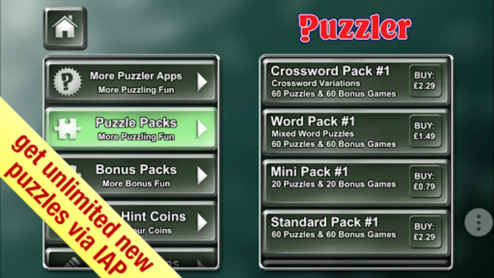 UNLIMITED PUZZLES - Ability to purchase and consume as much content as you want and as many times as you like from within the game store and in the confidence of never getting a repeated puzzle!