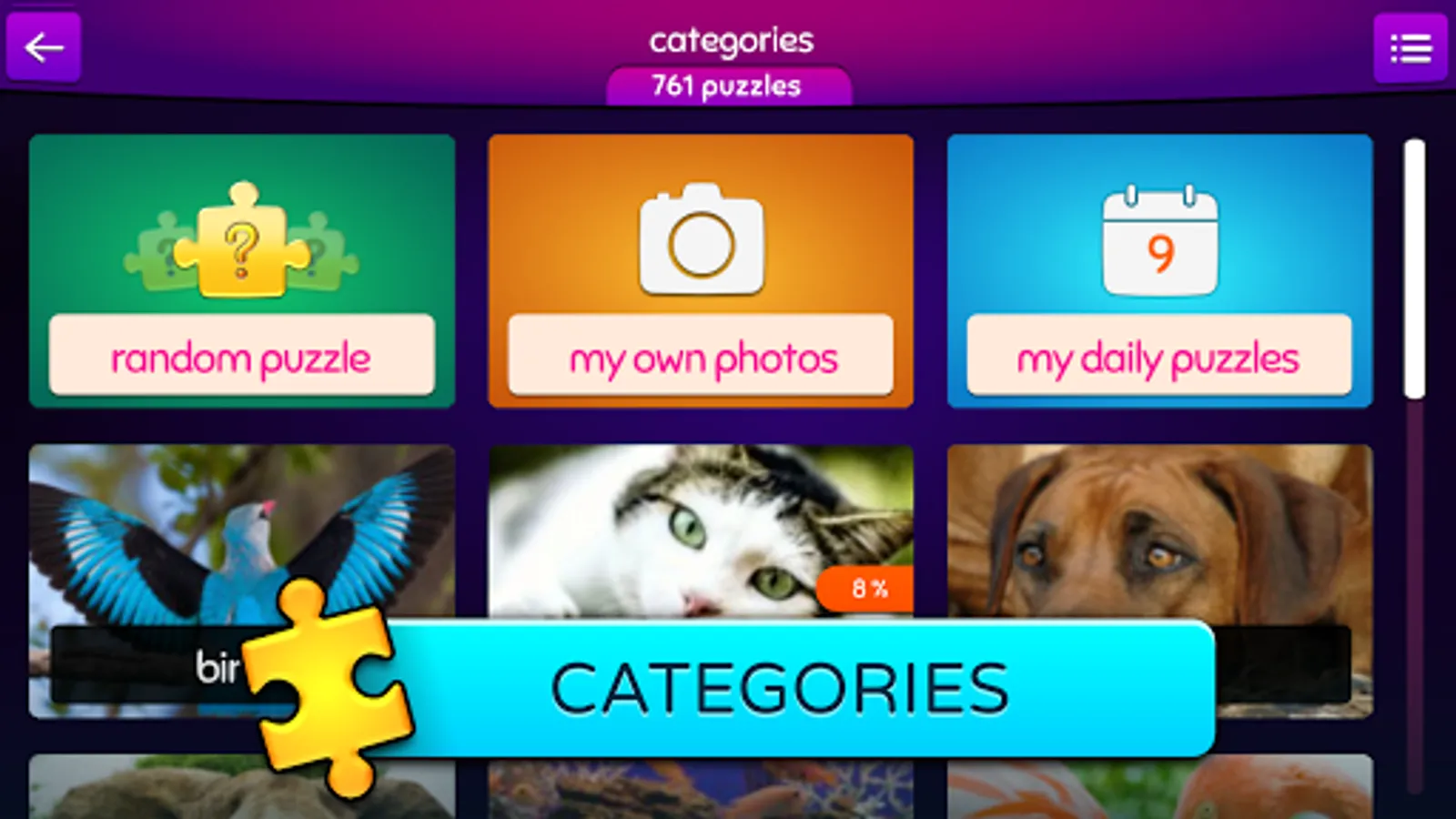 This app has a large variety of animals photos! Choose your favorite and turn them into a jigsaw puzzle. This will give you pleasure and a unique relaxation.