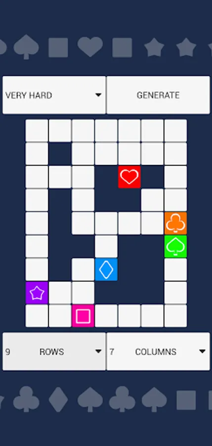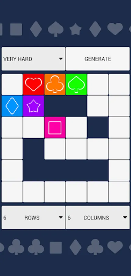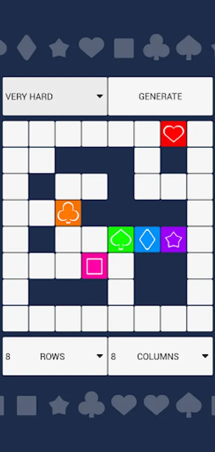 ShapeShifter is a very simple, yet challenging puzzle game. The goal is to align all the shapes into its respective shape holder. Hearts goes into the heart's slot, clubs goes into the club's slot, etc. Here's how it's tricky: All the shapes will slide in the direction that you swipe unless there is a wall, block, or another shape to prevent it from sliding.