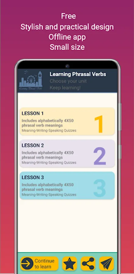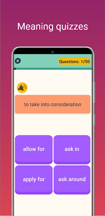 The learning technique, applied in the application, allows you to learn English phrasal verbs which are often used in common native English speech, movies, social media, etc. You can memorize all these words quickly by using our language learning app.