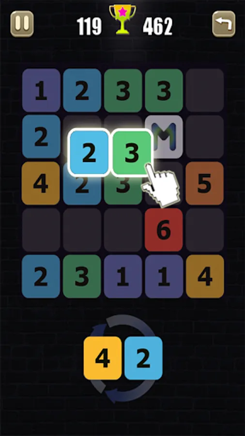 - Place three blocks(or more) with the same number next to each other to merge them, horizontally, vertically, or both.
