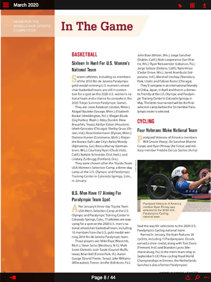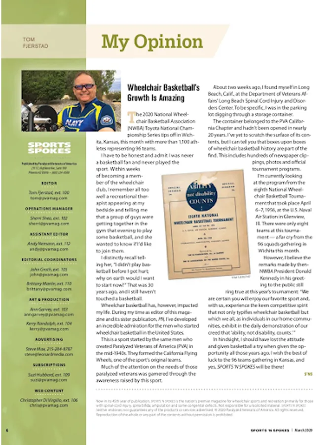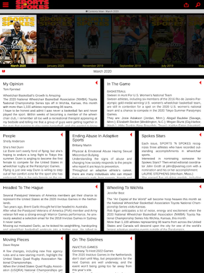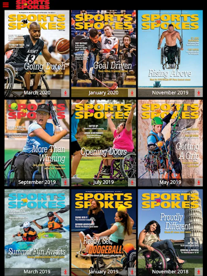 With SPORTS ‘N SPOKES Digital Magazine, you’ll explore the world of wheelchair sports and recreation and stay current on the latest news on athlete profiles, health & fitness, accessible technology, and updates for athletes or sports enthusiasts living with spinal-cord injury/disease For more than 40 years, SNS has been the nation’s premier source for wheelchair sports and recreation. The SNS Digital Magazine app delivers a digital version of our print publication. We are proudly published by Paralyzed Veterans of America (PVA) a nonprofit organization dedicated to serving veterans who have a spinal-cord injury or disease. PVA’s mission is to address all aspects of life - health-care, education, research, advocacy and sports for its members and all Americans with a spinal-cord injury or disease.