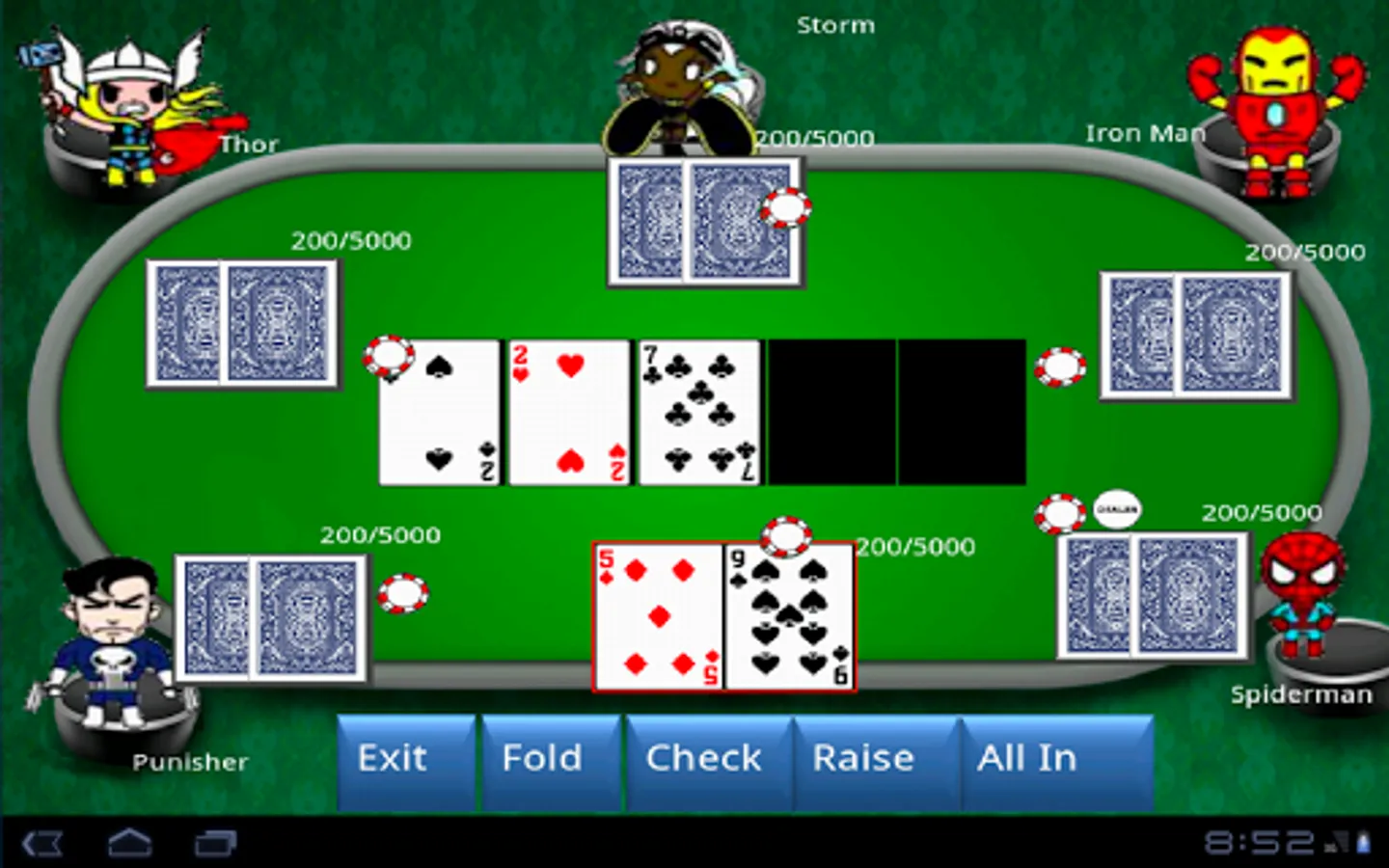 This is a traditional Texas Holdem Poker game with up to 6 players. Enjoy this totally free Poker game and improve your skills.