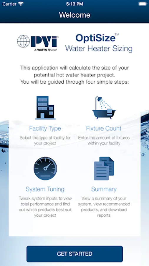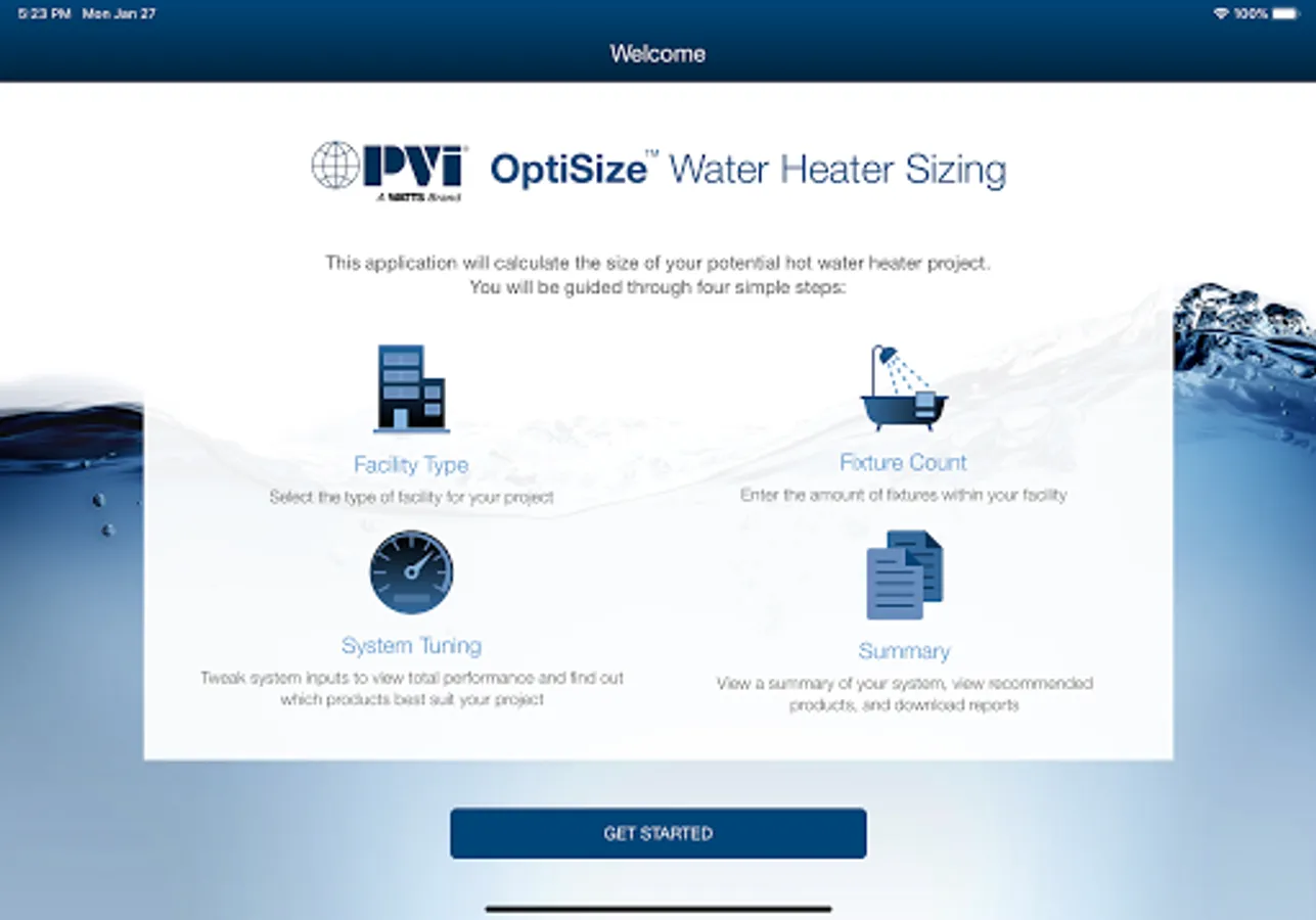This application will calculate the size of your potential hot water heater project. You will be guided through four simple steps:
