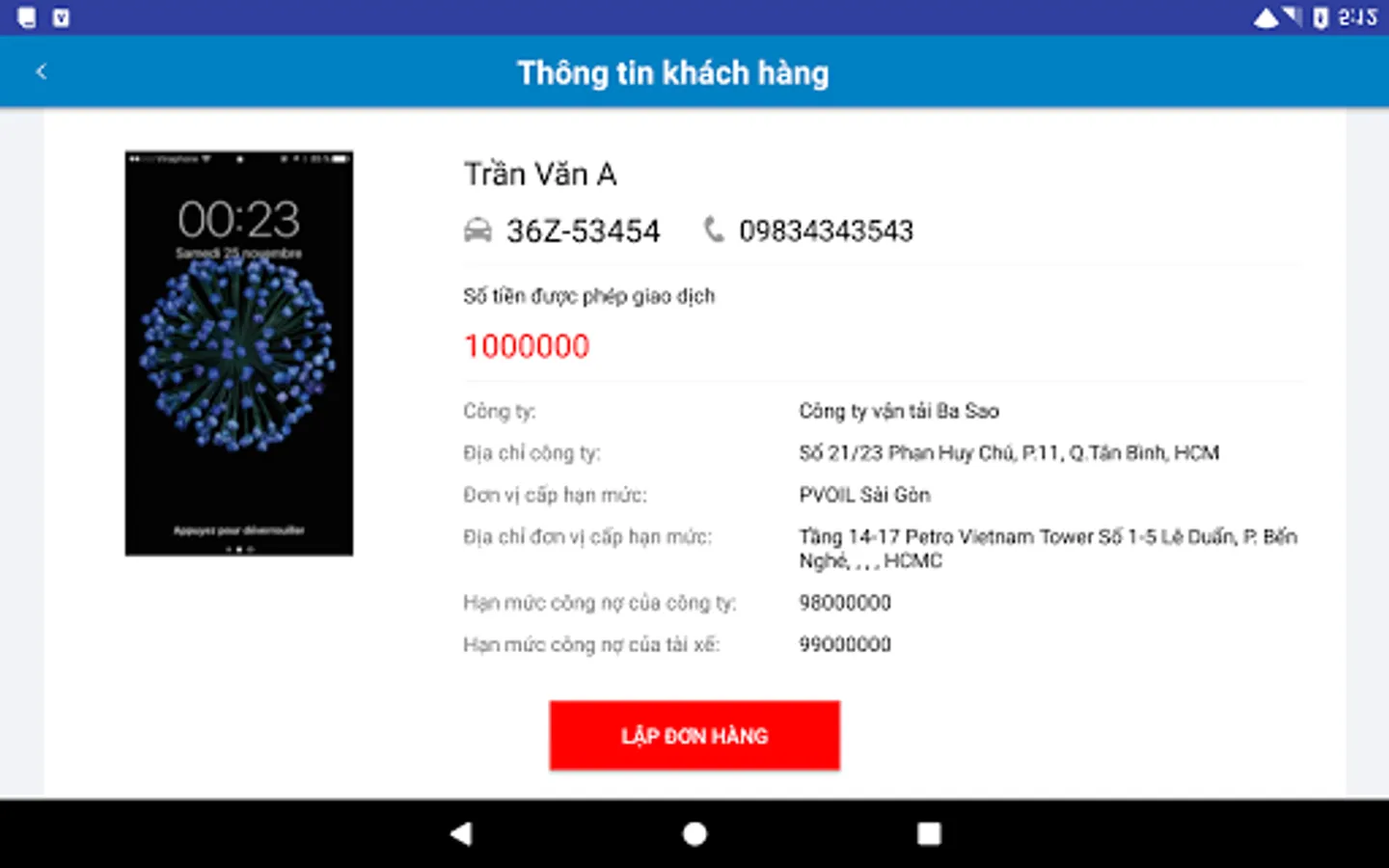 - Staff create sales orders for the drivers / employees kHTV after checking enough debt limit;