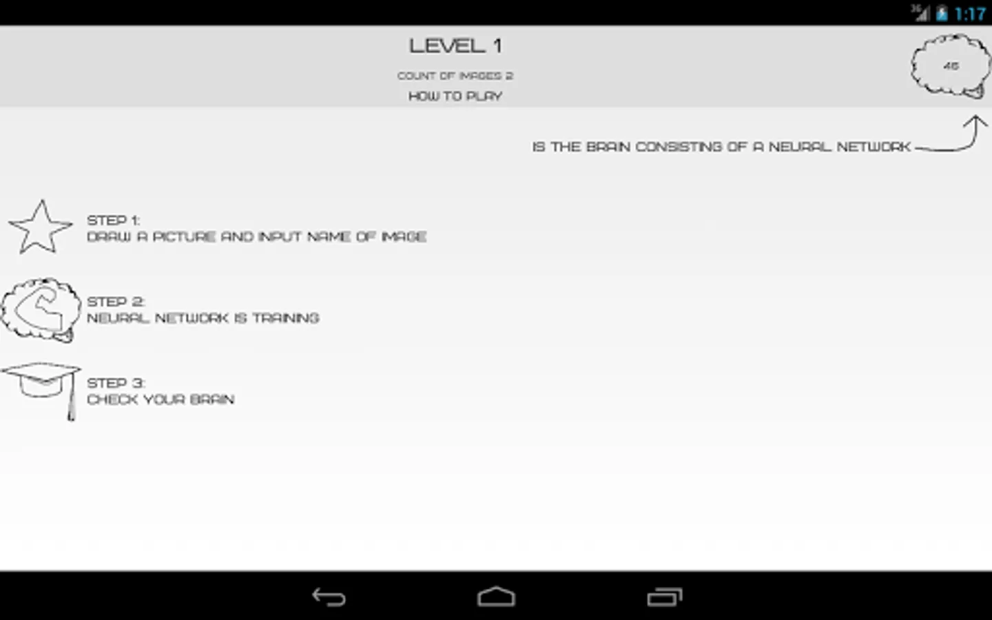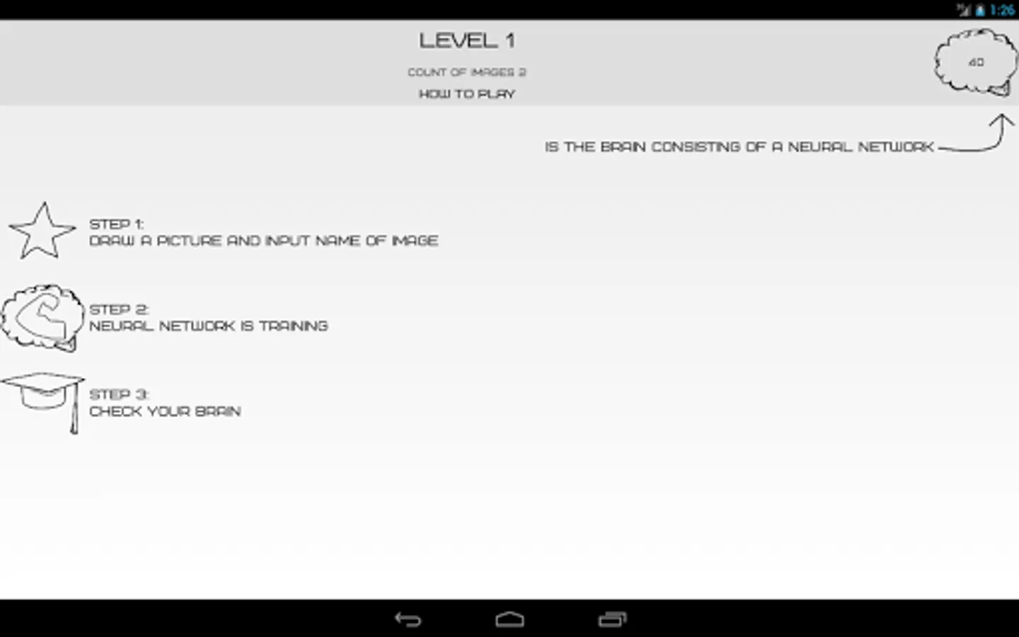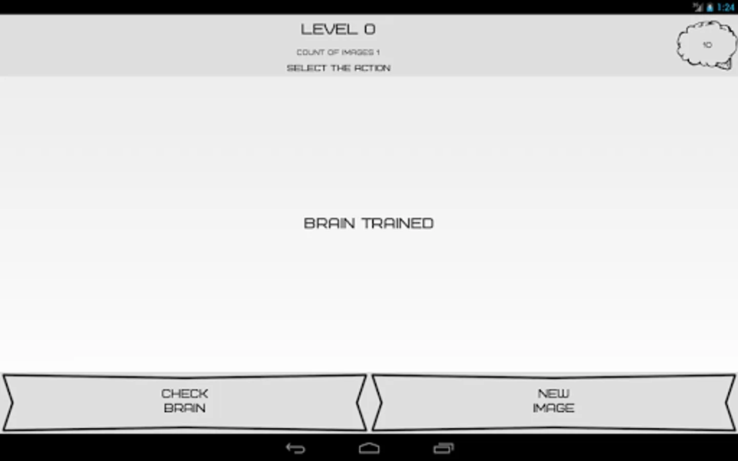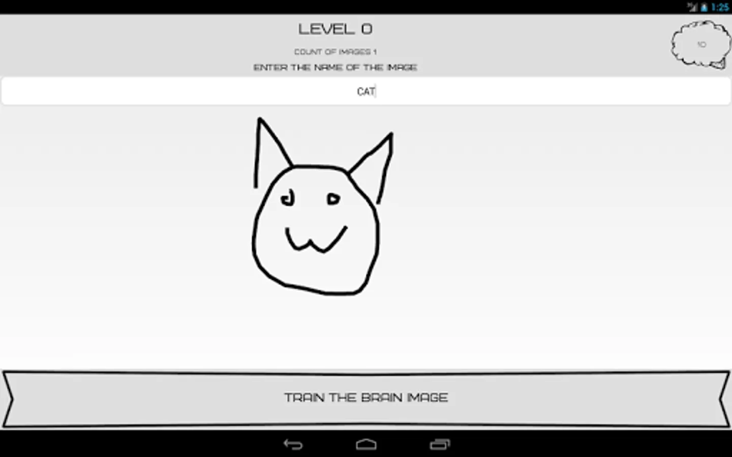 Brain that you create - it's just a neural network. He will remember the images that you draw and name. To go to the next level will need to be tested for the memory of those images that you drew.