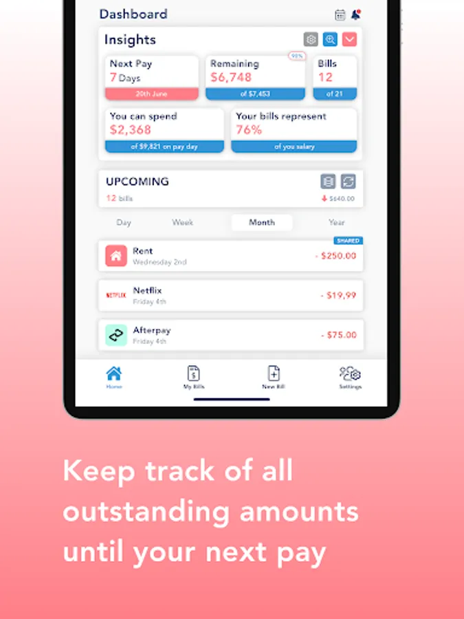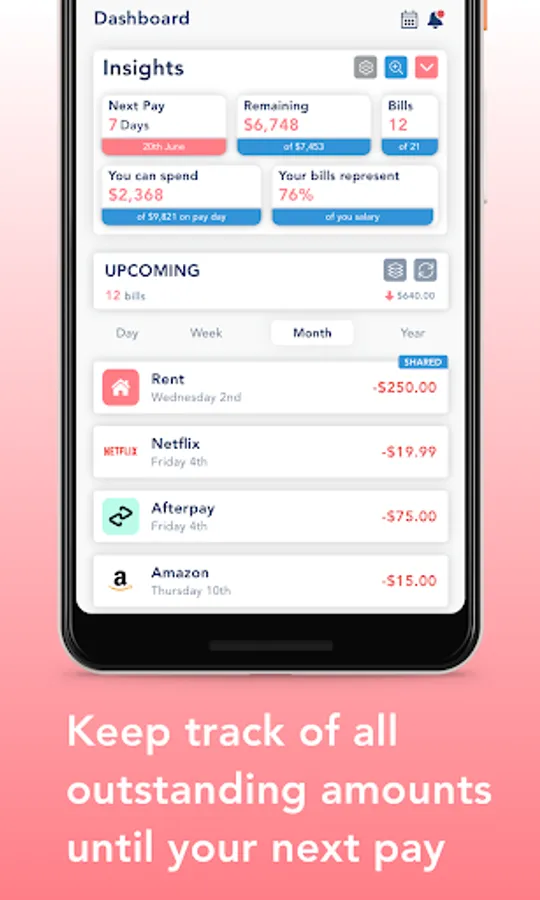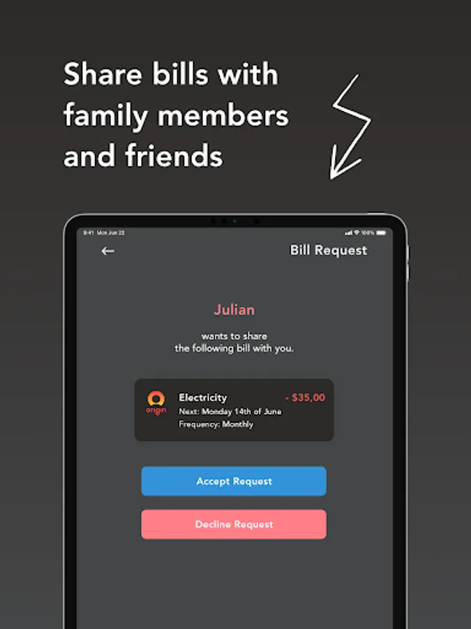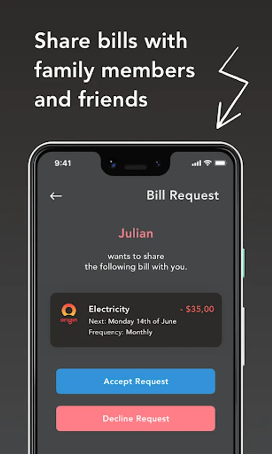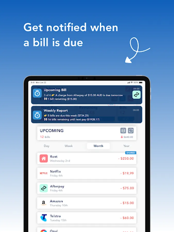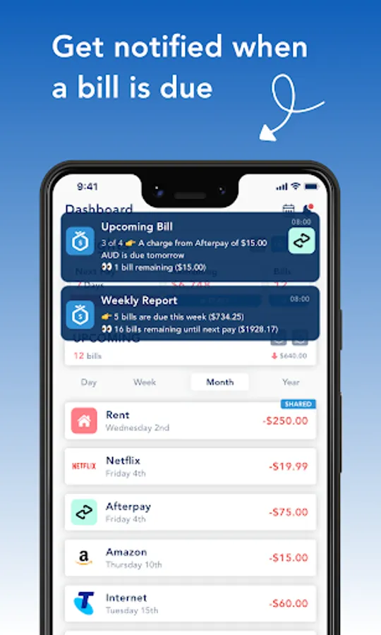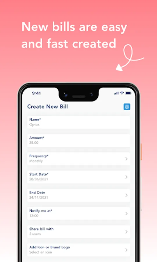 Have common bills with your flatmates or family? Create a shared bill so everyone is notified on time. Amounts can be personalised as well.