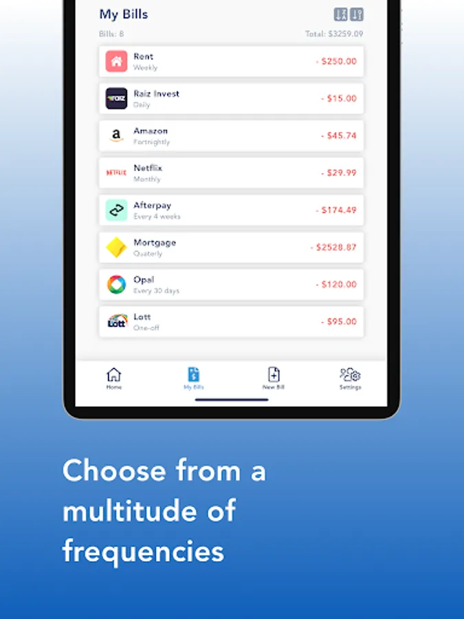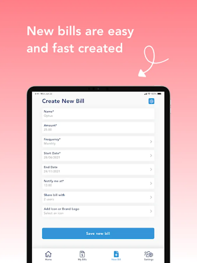 Create a bill in minutes and start receiving a notification when the bill is due.