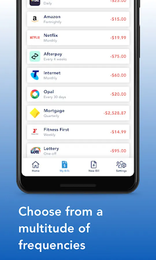 One-Off, Daily, weekly, every 4 weeks, fortnightly, monthly, quarterly, biannual, annually, BillOut got you covered.