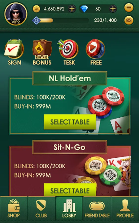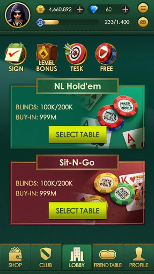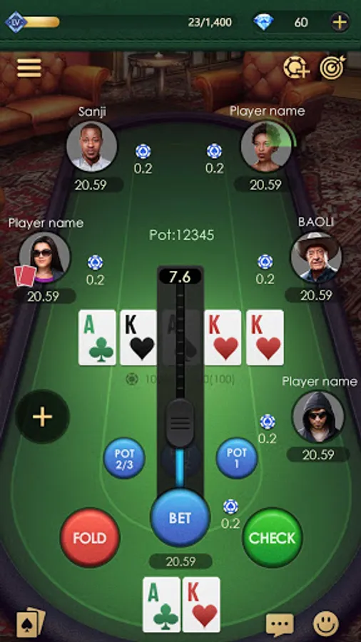 ● Game configuration: you will find more advanced players and learn more advanced poker skills, improving your level. You will also get a reward and incentive fee.