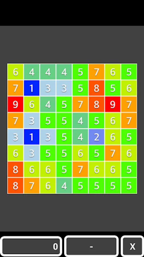 Minimalistic puzzle game in which the player's goal is to fill all the fields of the board with a green color (number 5).