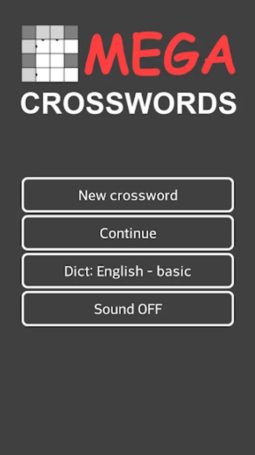 - Two crossword sizes (small/large),