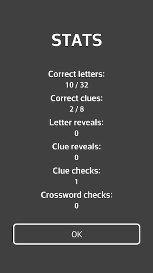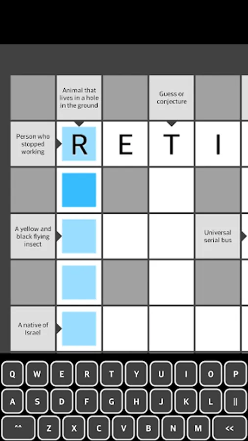 - Possibility of typing single letters in the crossword cells,