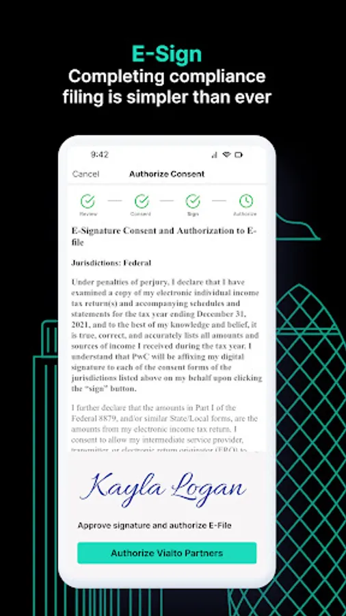 Review your tax returns the moment they are ready and authorize Vialto Partners to complete the filing process using our mobile E-Sign technology.