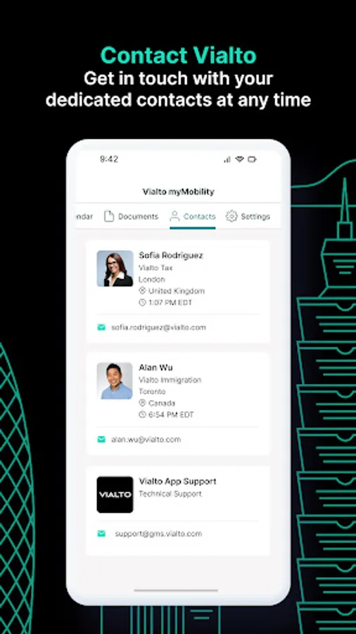 Contact your Vialto Partners dedicated contacts at any time. From a question about your tax filings to inquiring about the status of your Visa application, or anything in between, we are here to help you better understand your mobility obligations.