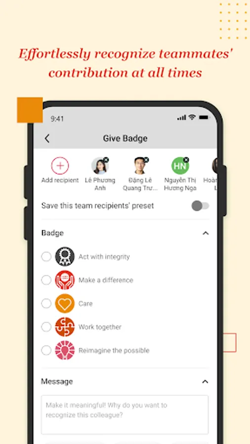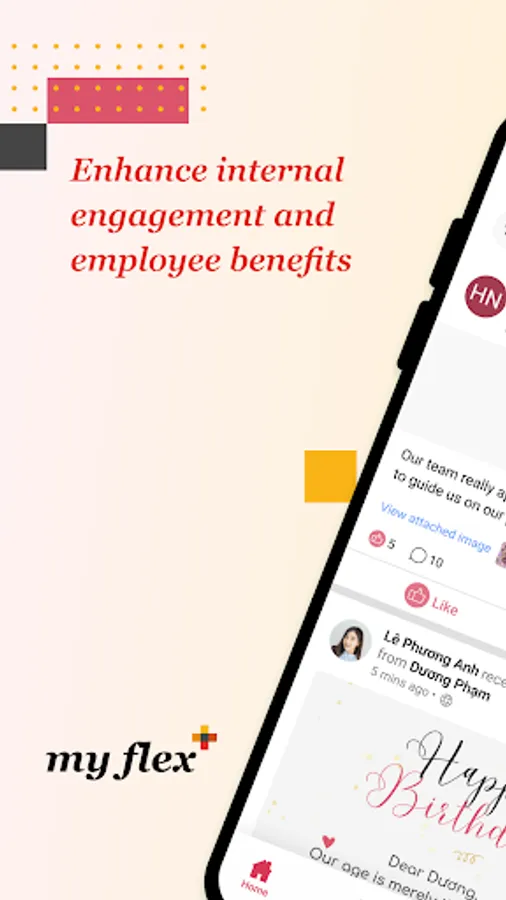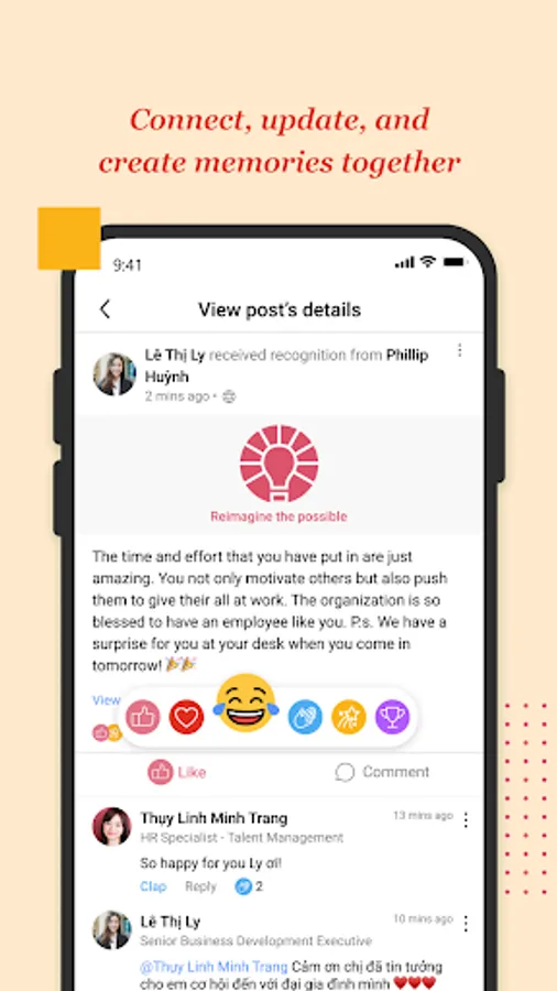 Allow two-way interaction, users can receive notifications, news from the company; share their own recognition and interact with other colleagues.