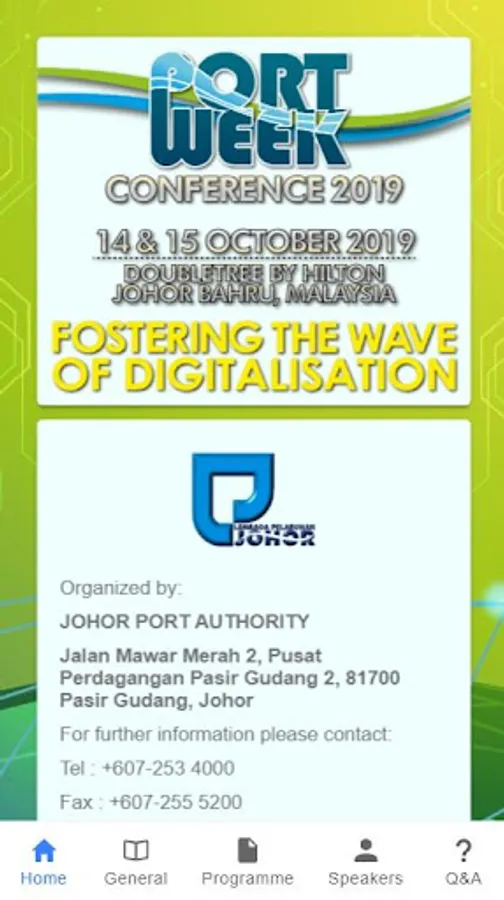 Port Week Conference is an annual event hosted by Johor Port Authority, Malaysia. A 2 days Conference Programme will feature local and world-class conference speakers addressing topical issues and challenges on digitalisation in global transportation and logistics. In 2019, the Port Week Conference theme is “Fostering The Wave of Digitalisation".
