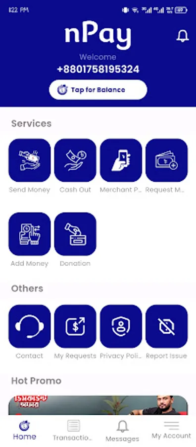nPay is an online digital wallet app. User can start transfer money to someone else or they can also request for money.