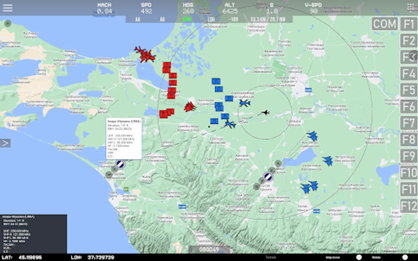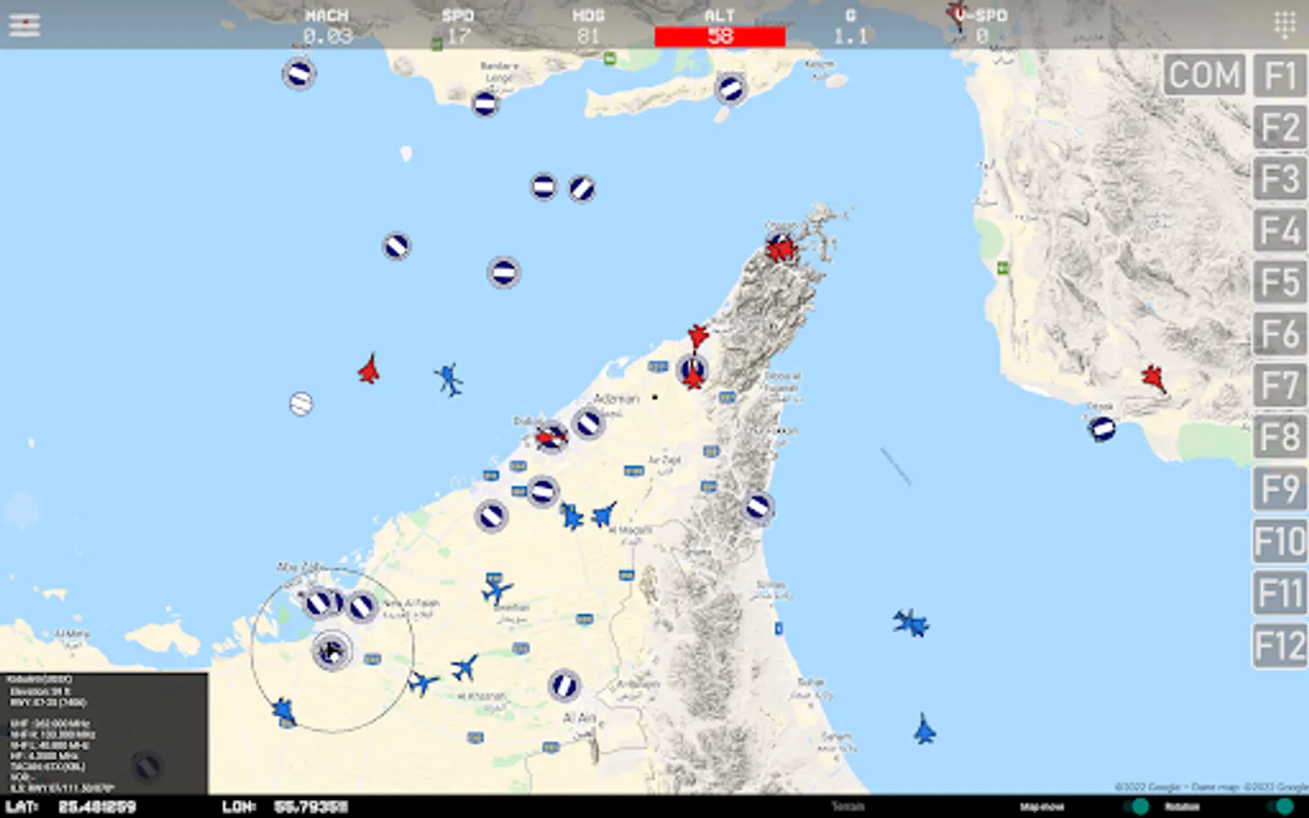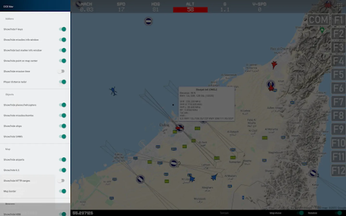 - display of additional information (A/A, A/G, Arm, landing gear, distance to selected object)
