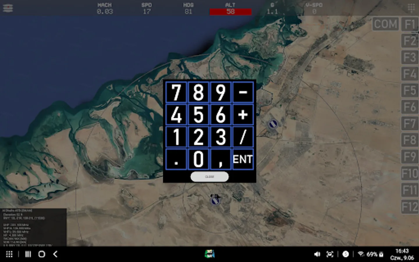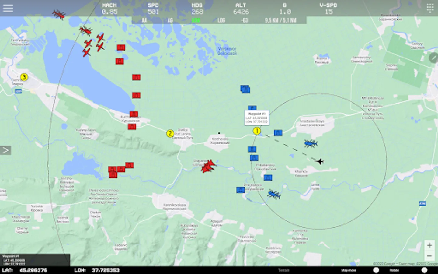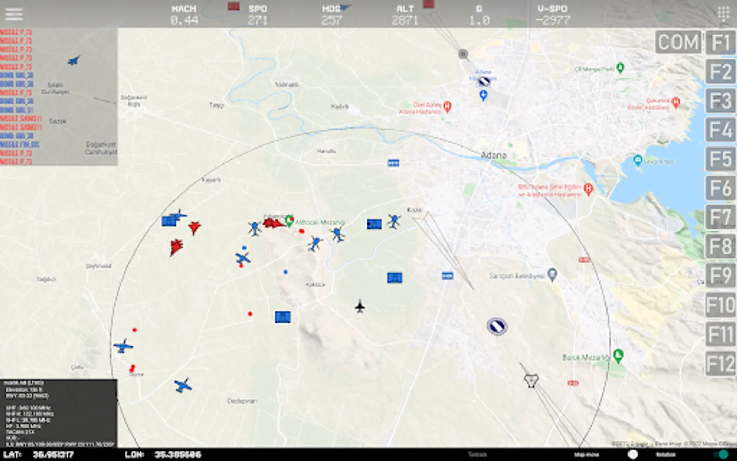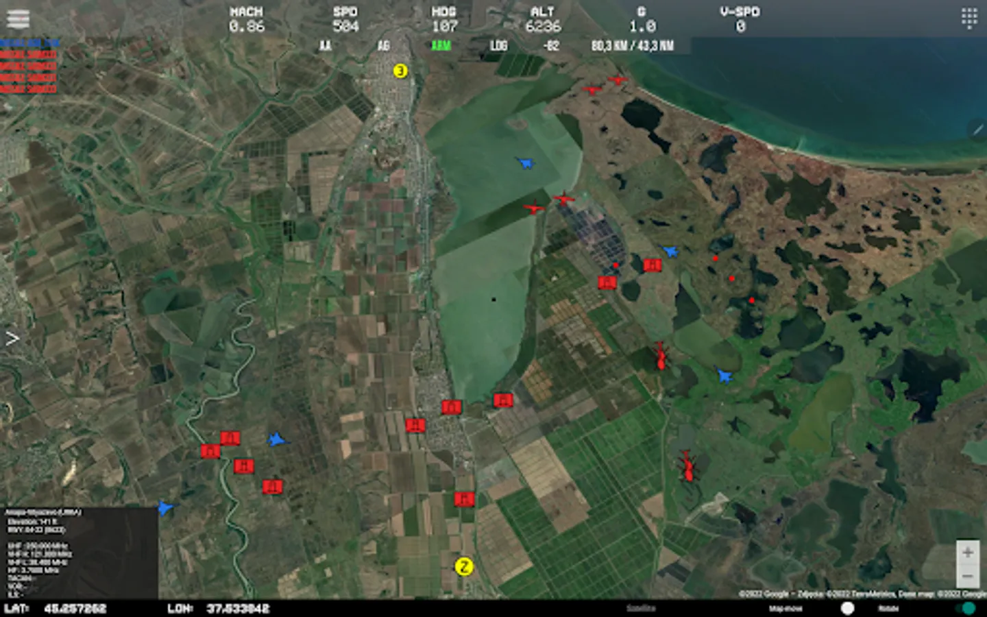 - display of additional information (A/A, A/G, Arm, landing gear, distance to selected object)