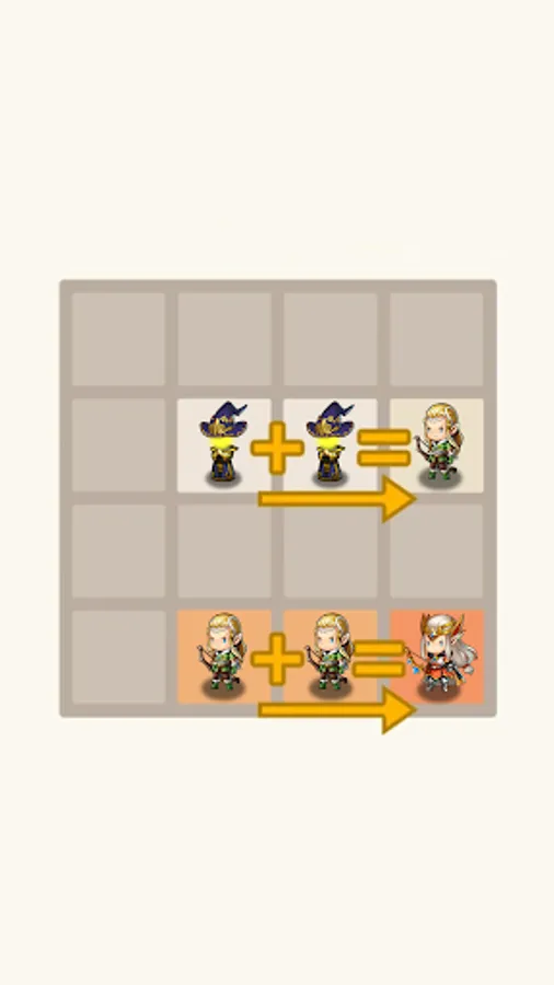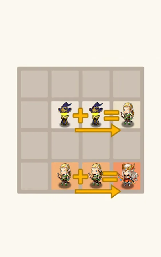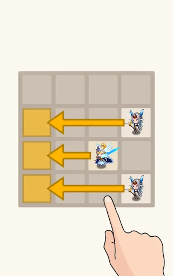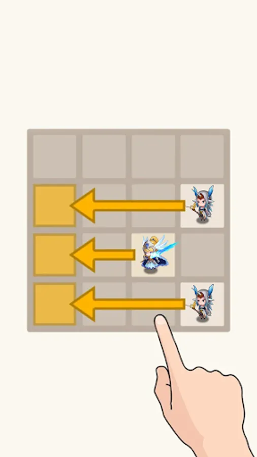 Swipe to move all heroes. When two hero with the same, they merge into one.