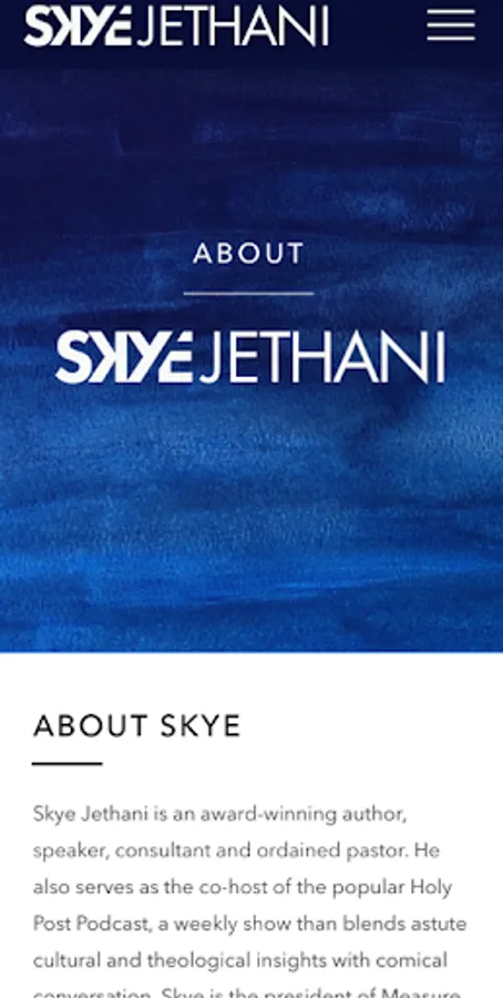 Skye has authored seven books including: The Divine Commodity: Discovering a Faith Beyond Consumer Christianity (2009), WITH: Reimagining the Way You Relate to God (2011), What’s Wrong With Religion: 9 Things No One Told You About Faith (2017), and Immeasurable: Reflections on the Soul of Ministry in the Age of Church, Inc. (2018).
